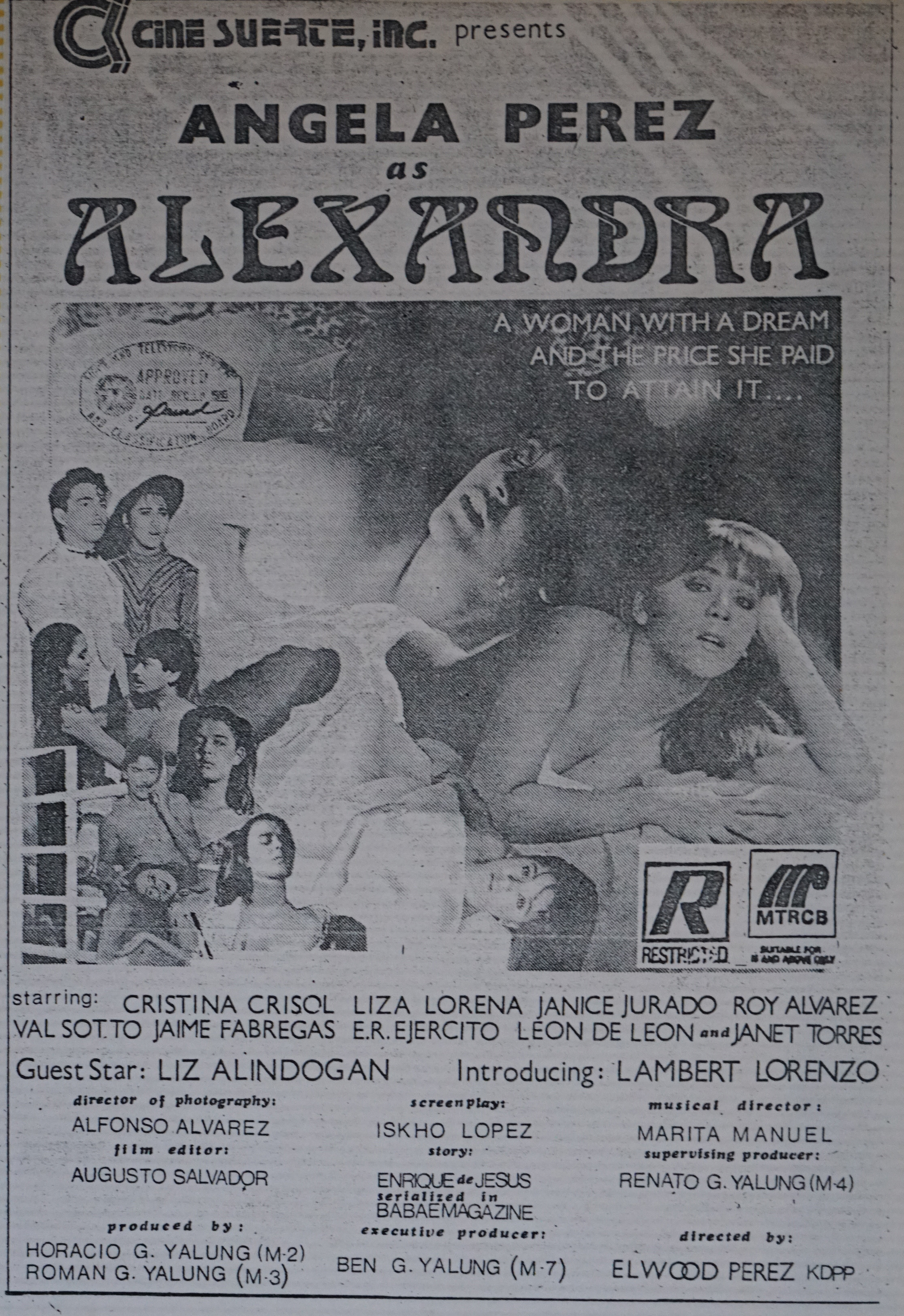 Cast: Lorna Tolentino, Rio Locsin, Mark Gil, Lucita Soriano, Matimtiman Cruz, Anita Linda, Joe Fabregas, Greggy Liwag, Herbert Corpuz, Romeo Rivera