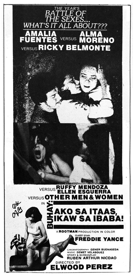 Fresh out of college, the young Elwood Perez became a writer and stage director for the drama anthology series “Balintataw,” along with Joey Gosiengfao and Lino Brocka. He was discovered by Fred Cortez Jr., that led to his directorial debut film “Blue Boy,” in 1970 starring Cortez Jr., which became a flop. In 1973, he was assigned to direct Valentina in the trilogy of “Lipad, Darna, Lipad!,” with directors Emmanuel H. Borlaza and Joey Gosiengfiao that became a huge hit flocked by moviegoers. The trilogy became his formula and expertise that he adapted to most of his films such as “Bawal : Asawa Mo, Asawa Ko (1974)”