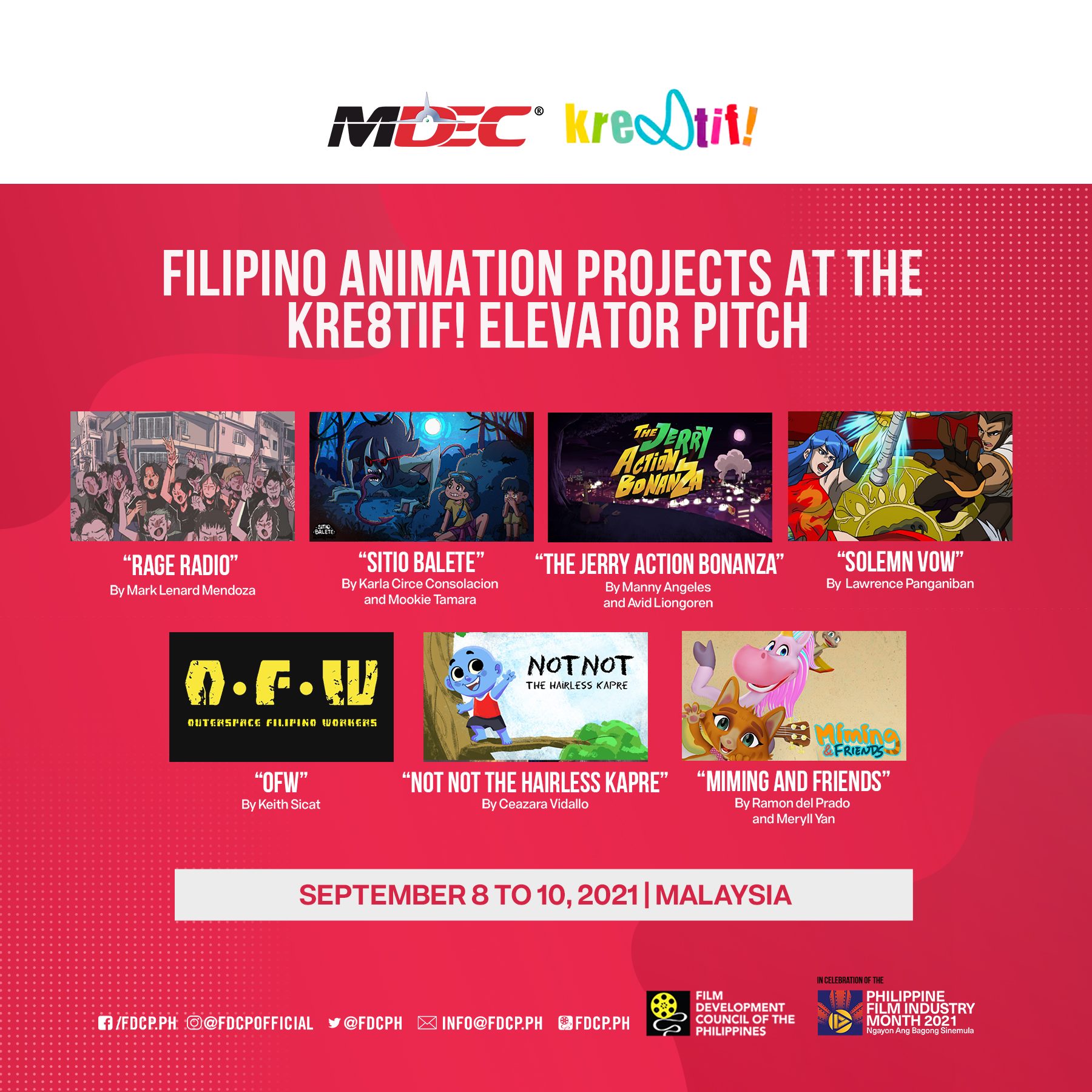 The Film Development Council of the Philippines (FDCP), in partnership with Kre8tif!, issued a call for Philippine animation projects last August for the Elevator Pitch event, a platform devised for selected studios to pitch their original Intellectual Property (IP) to a panel of buyers within 5 minutes. FDCP has participated in Kre8tif! To represent the Filipino animation and film industry since 2018.