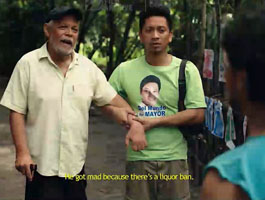The mystery of politics in remote towns in remote provinces is tackled with vivid realism here in "Badil" (supposedly the Bicolano word for "gun"). In a small barangay, supporters of both mayoralty candidates know each other. One-thousand peso bills are used to buy votes as naturally and as openly as buying food from a market.